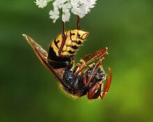 Hornets are wasps that are closely related to, but not to be confused with yellow jackets. In all, there are about 20 hornet species worldwide, but the primary hornet in North America is the European hornet. Just like other social wasps, hornets create their nests from chewing wood into a papery pulp to raise their eggs to adults.